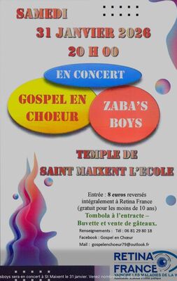 La chorale des Zabasboys sera en concert à St Maixent le 31 janvier. Venez nombreux les applaudir!