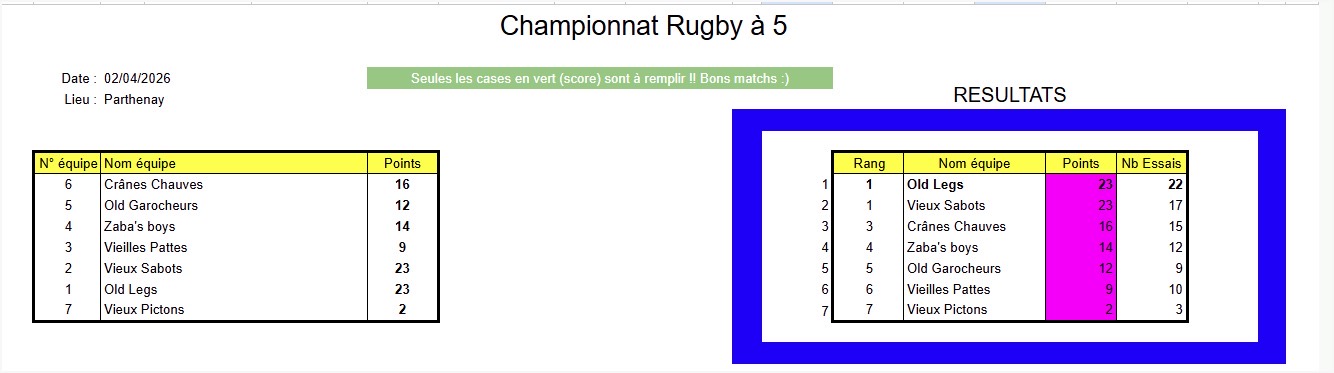Pour la dernière journée, nous étions 9 à participer au tournoi à Parthenay, nous avons gagné 3 matchs, fait un match nul pour 2 défaites. Nous sommes toujours à la 3ème du classement général.