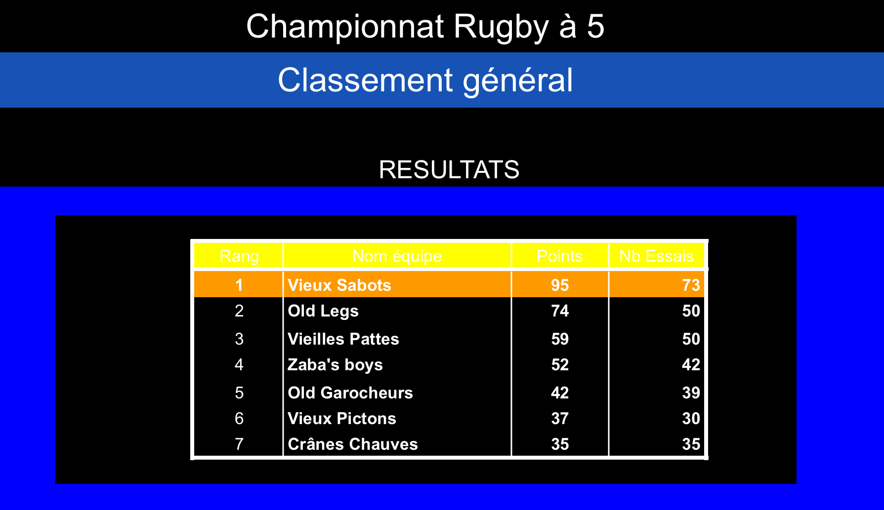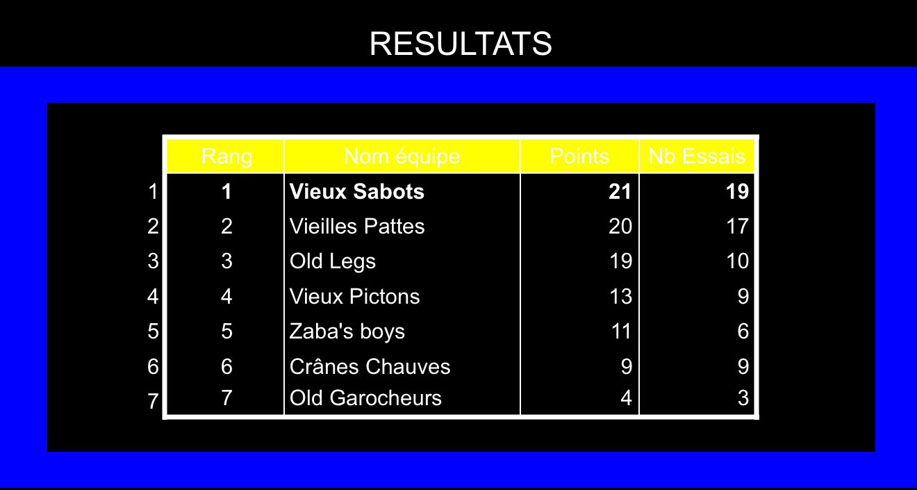 On finit 5ème ce soir derrière les Vieux Sabots remportent encore cette manche.